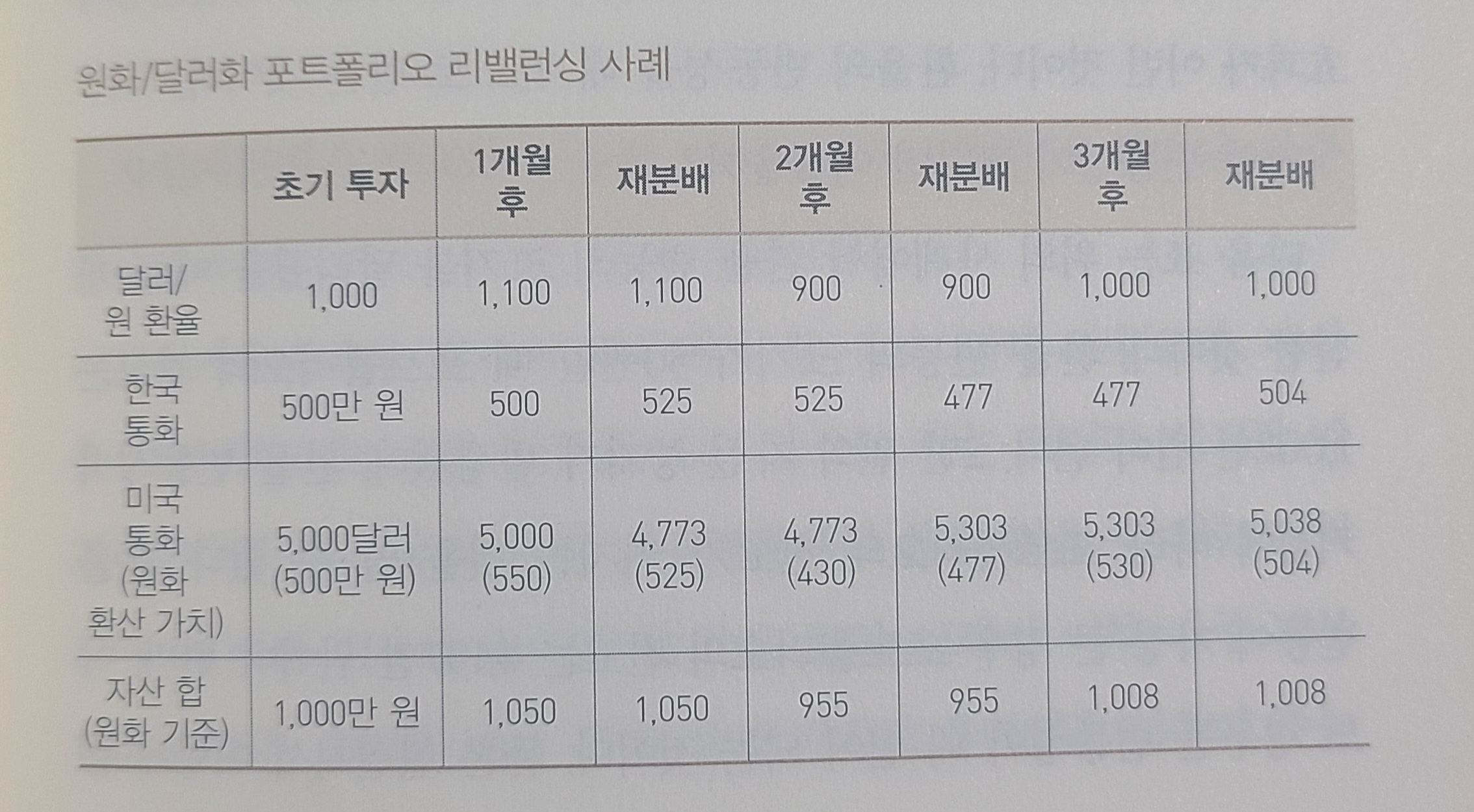 환율 변동에 따라 원화와 달러화를 50:50으로 리밸런싱 해줬을 뿐인데 합계가 늘어났다. 이런 마법같은 일이!
