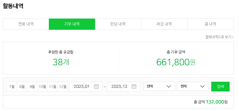 | 2024년 연말 네이버페이 해피빈 기부 (1) | 2024.12.11 |